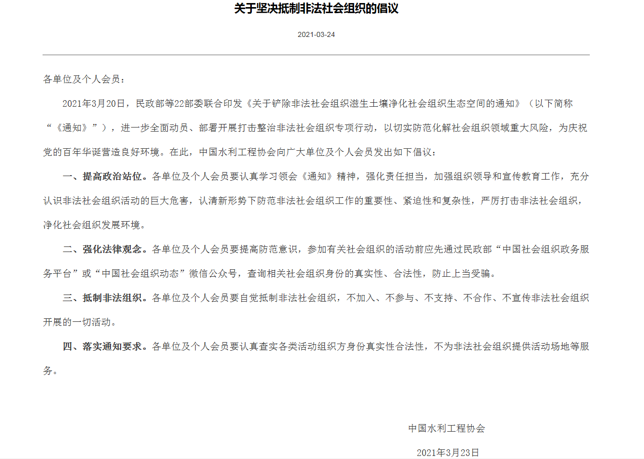 關(guān)于堅(jiān)決抵制非法社會(huì)組織的倡議