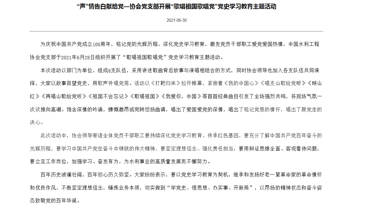 “聲”情告白獻(xiàn)給黨—協(xié)會(huì)黨支部開(kāi)展“歌唱祖國(guó)歌唱黨”黨史學(xué)習(xí)教育主題活動(dòng)